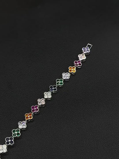 A classic motif, redefined for the relentless. The Reimagined Clover bracelet features bold four-leaf clover inlays set in a refined silver-tone chain, merging timeless luck with modern underground grit. For the ones who build their own fortune quietly and confidently. Available in rainbow colors or dark green.